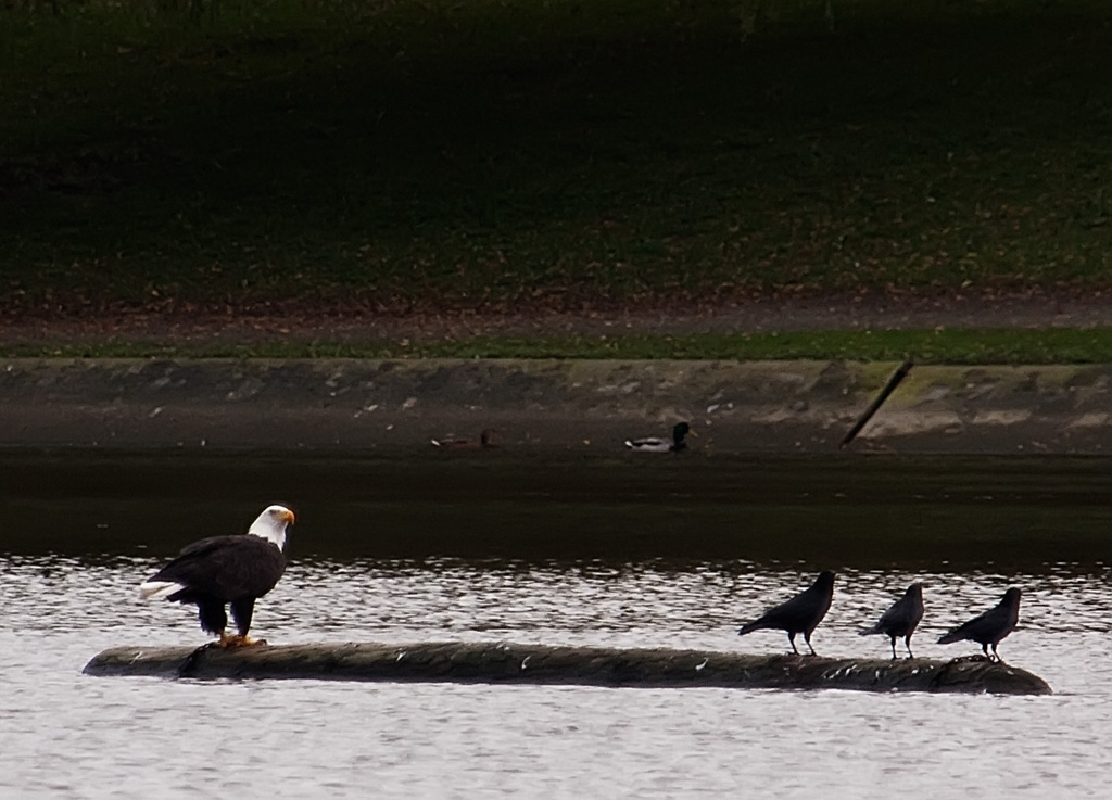 Park, and my ears picked up a lot more than my eyes did. We heard many birds we didn’t recognize, but only saw a few flickers in the bushes. Veronica heard the bald eagles again, but they were high above, and the foliage hid them. We did manage to catch glimpses of kinglets, juncos, chickadees, and towhee, but not long enough to train a camera on them. At Beaver Lake there were more ducks, among them a pair of Wood Duck – really interesting colours.